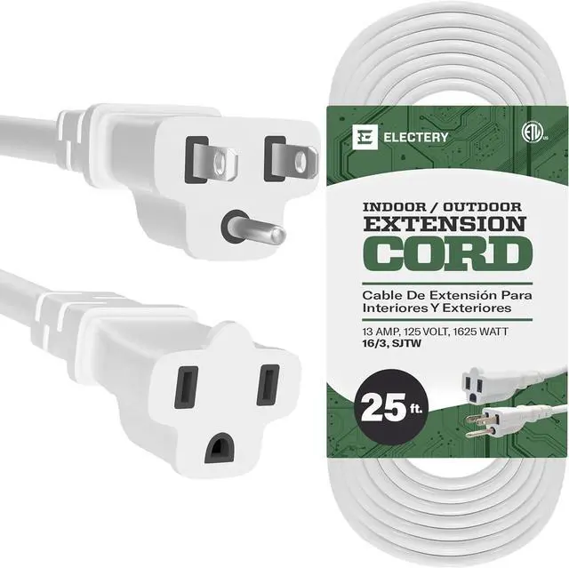 HIGH-QUALITY CORD - The extension cord is made with thicker 16 AWG wire diameters which can handle more amperage, Get more from your heavy-duty 3-Prong extension cord with a high capacity of 1625 Watt rating (13 Amps, 125V). Link additional extension cords, power strips, surge protectors, plug adders, and devices up to a max of 1625W.