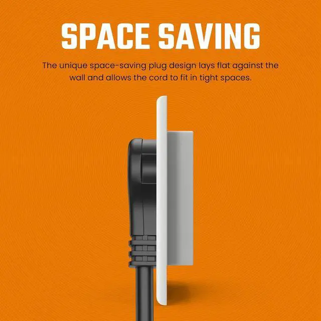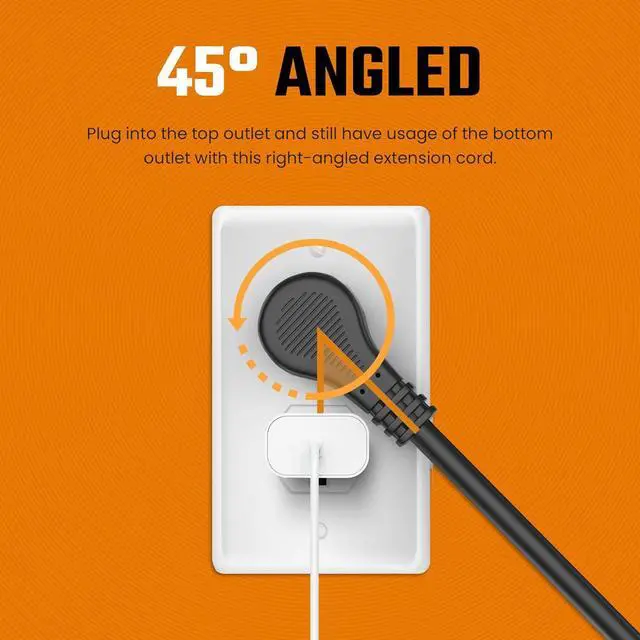 FLAT, ANGLED EXTENSION CORD FOR EASY USE: This flat head plug extension cord is easy to connect