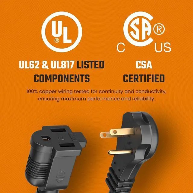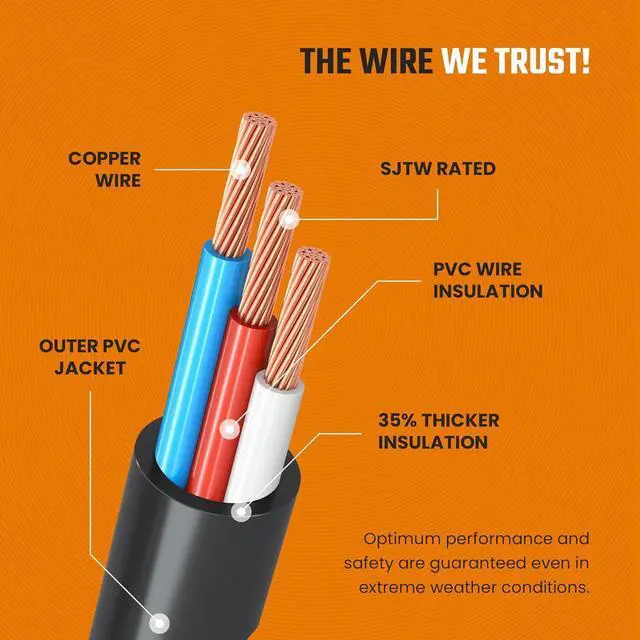 WEATHERPROOF DESIGN FOR INDOOR & OUTDOOR USE: Our SJTW extension wires can withstand any type of weather, from rain and snow to heat and direct sunlight. 5000-bendable rated for advanced flexibility and tear resistance.