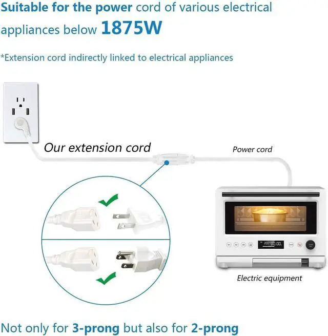 STURDY BUT FLEXIBLE: 14 AWG (15A) extension cords are with thicker wire diameter, can handle more amperage and thus more wattage, less chance of getting hot, safer and more reliable compared with the thinner 16 AWG ones