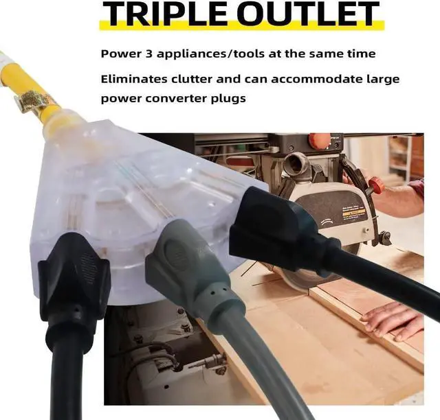 3 Outlets in 1 - Multi plug extension cord comes with a pigtail triple tap; allow you to power multiple appliances simultaneously and maximize the usage of power strips and wall outlets.