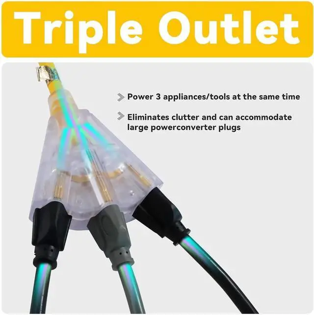 3 Outlets for Maximum Versatility - Power up to 3 devices simultaneously with this versatile extension cord. Perfect for heavy-duty tools such as electric drills, circular saws, air compressors, angle grinders, welding machines, electric planers, electric saws, etc, lights, and appliances. Works seamlessly with both professional equipment and everyday electronics