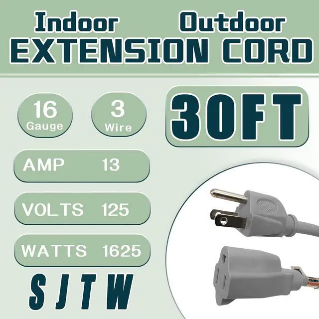 Indoor Outdoor Power Cord - Suit for your household appliances, generator, HEV, DIY electric tools, lawn mower, pressure washer and holiday light system.