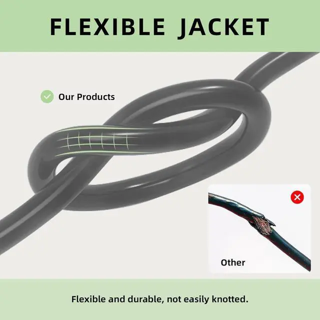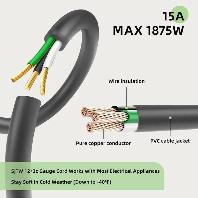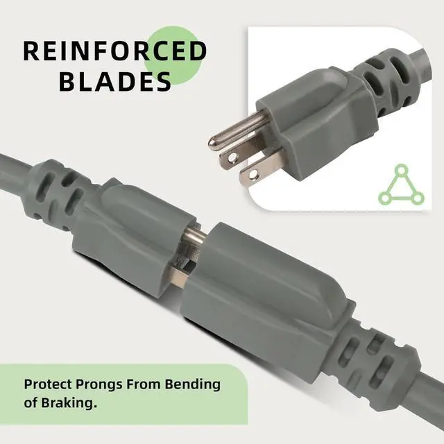 Safe Cable - UL Listed, 3 prong grounded plug for added safety. Reinforced blades protect prongs from bending or breaking. Remain flexible and tangle-free under all weather conditions and wouldnt become stiff or crack in cold weather.