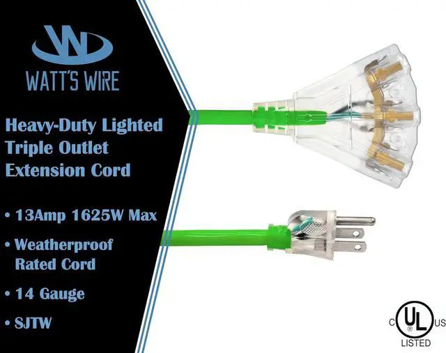 Use One Cord Instead of Three: Our extension cord with multiple outlets will save you the hassle and money of using multiple cords. Our pigtail design works great as an extension cord splitter.