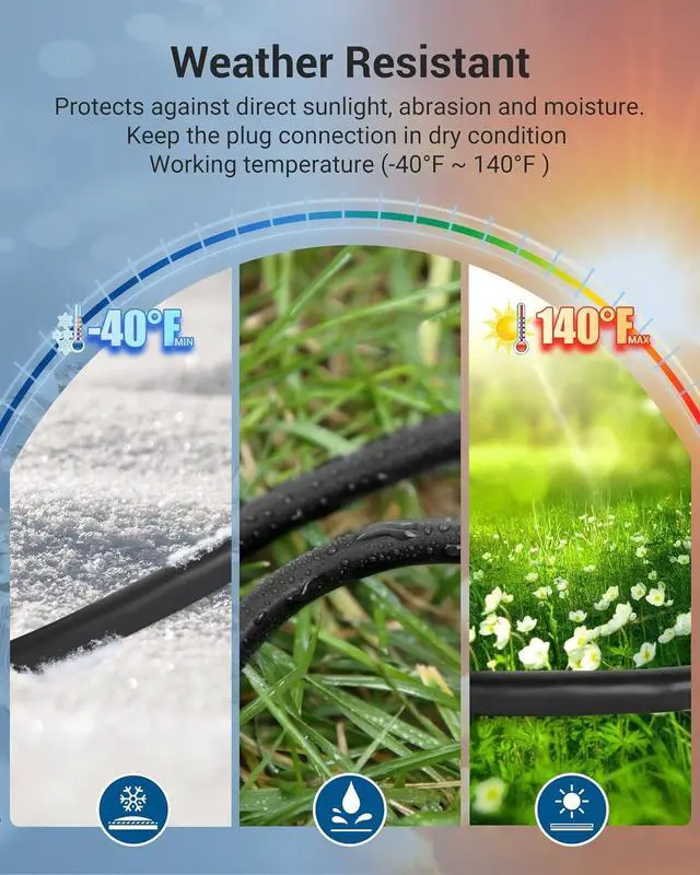 [Weatherproof & Long Lifespan] Our extension cord 6ft outdoor adopts with fully formed design and wear-resistant PVC jacket, strong and durable enough to protect against moisture, abrasion, and direct sunlight; maintains the flexibility in cold weather, lasts for years; No need to change frequently, save your money