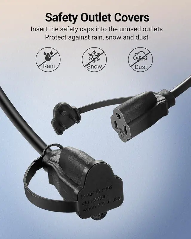 [Safety Covers] Each outlet plug comes with a safety cover to protect against rain, snow and dust, support outdoor extension cord multiple outlet being used in wet locations; ETL listed for safe use