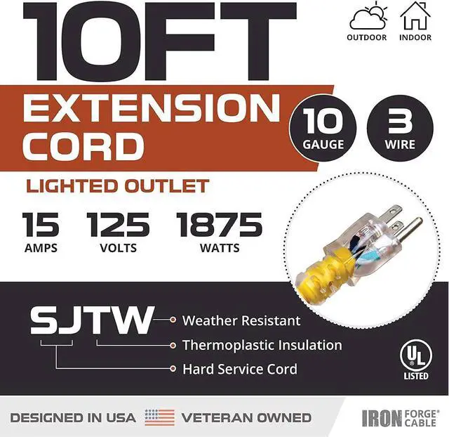 Ultra Heavy Duty Extension Cord - Our 10 gauge heavy duty extension cord 10 ft are made for outdoor and indoor use. Great for construction site, home use to power major appliance, drills, hammer drills, circular saws, wet and dry vacs, lawn mowers, compressors, music equipment, landscaping, gardens, power tools, outdoor lights, EV charger, welding, and much more.
