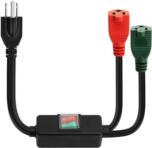 USA 3-Prong Male to Dual 5-15R Female On-Off Switch Extension Cord, [IP57 Waterproof Outdoor use] On/Off Double Cut switch extension cord, rated Max.: @ [23Amp 125Volt and 16Amp 250V], 3 -Prong USA Canada extension power cord with 23-Amp/125Volt Waterproof on off switch for your household 3-Prong power devices.