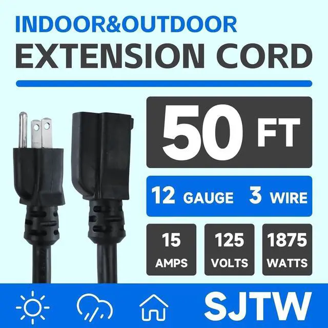 Heavy Duty Performance - The 12/3 heavy duty extension cord boasts a robust 12 gauge 3 wire heavy-duty construction with pure copper wire, supporting up to 15 amps, 125 volts, and 1875 watts. Ideal for powering high-demand appliances and tools with reliability.