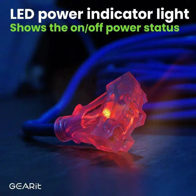 Easy and Safe to Use in the Dark - The bright jacket color combines with built-in LED indicators on the 3-prong connectors to make this extension cord the perfect solution in dark environments, from overcast conditions to nighttime use. The color helps prevent tripping in grass and on cluttered floors, and the light always lets you know when power is flowing.