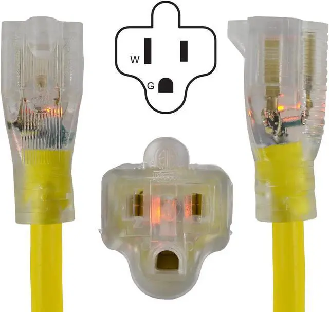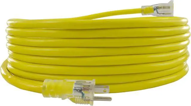 Lighted End for Safety & Visibility The power indicator illuminates when the cord is powered, ensuring quick and easy status checks. The high-visibility PVC jacket reduces tripping hazards in low-light conditions, making it safe for indoor and outdoor use. Each 12/3 extension cord is high-voltage tested at 1500V, ensuring maximum safety for your appliances.