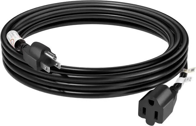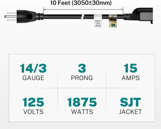 SPECIFICATION: 10 Feet black extension cord, 14 AWG, 15 Amp, 1875 Watt, 125 Volt