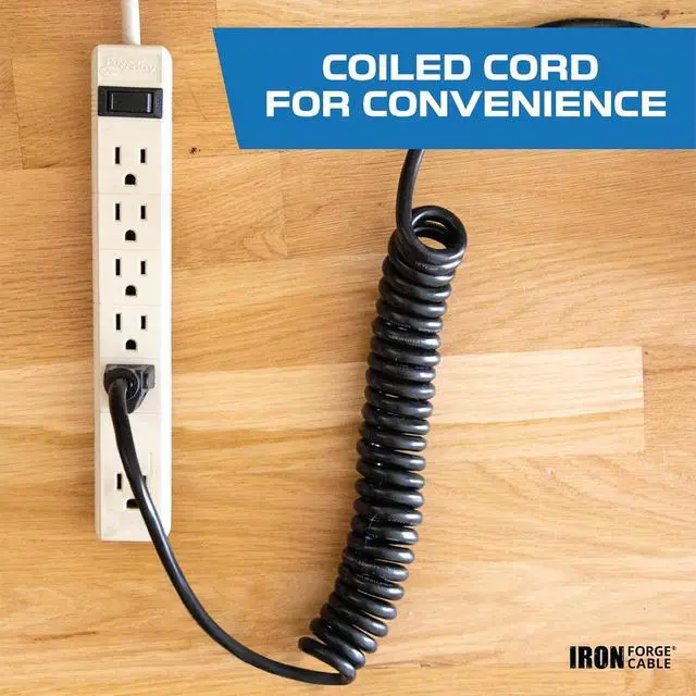 Durable SJEOW Design for Tough Environments: Constructed with a flexible vinyl covering, this heavy duty coiled extension cord boasts oil resistance, moisture protection, and flame retardancy. Designed to endure harsh weather and rough use, it resists abrasion, sunlight, snow, and water, making it the ultimate outdoor electrical cord.