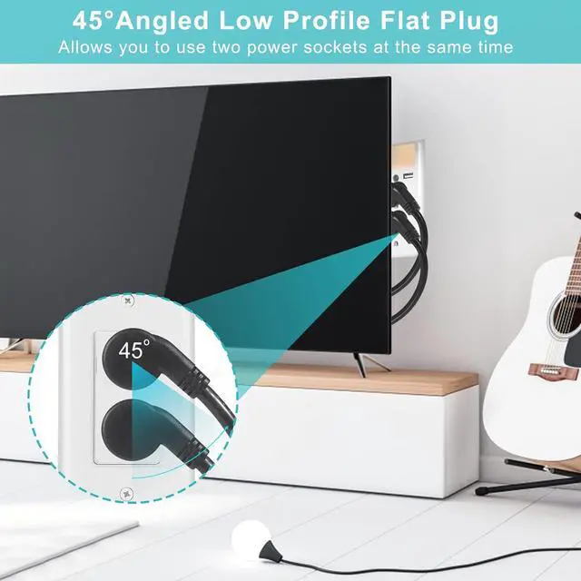 Compact Design: With its 18-inch length and right-angled flat plug, it fits seamlessly behind furniture or in tight spaces. The flat plug design prevents obstruction of adjacent outlets, maximizing available space.