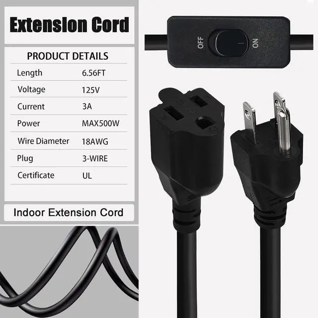 Widely Used: Indoor extension cables connect existing cables to standard 3 Prong 120V AC sockets. Universal extension cables are suitable for indoor use and can be used for electrical appliances such as holiday lighting fixtures, office computers, and household appliances.