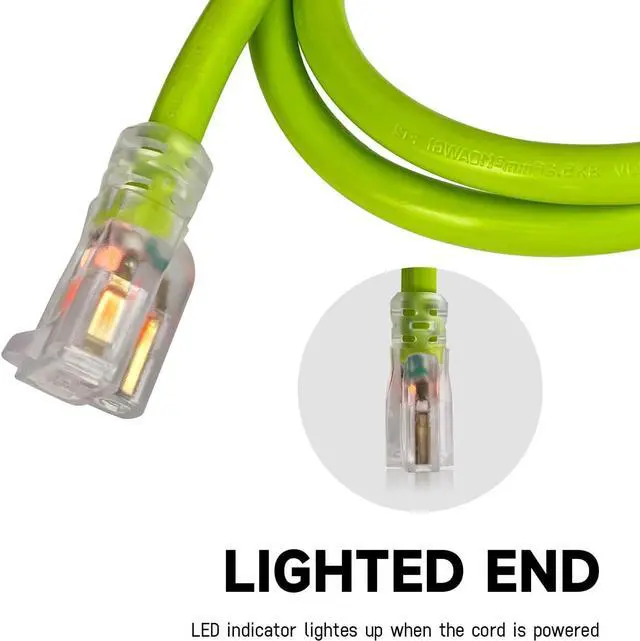 Lighted Extension Cord End - LED indicator lights up when the cord is powered to let you know the triple tap extension cord is ready to use and easy to be found in the dark.