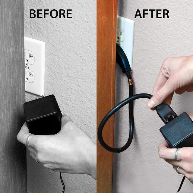 Space Efficient: Convert your standard AC power cord to a slim flat plug, providing angular flexibility. Plug into the top outlet and still have usage of the bottom outlet with this flat plug cord