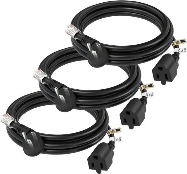 Heavy Duty: 14 AWG (15A) extension cords with thicker wire diameters, which can handle more amperage and thus more wattage, less chance of getting hot, is safer and more reliable compared with the thinner 16 AWG ones