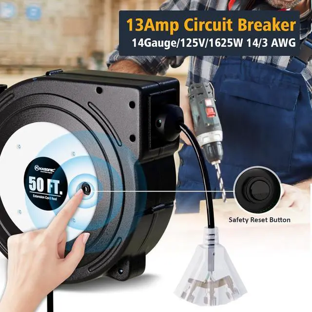 50 FT Retractable Extension Cord Reel - 14AWG/3C Gauge, Input