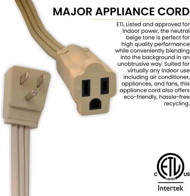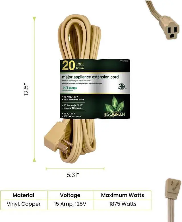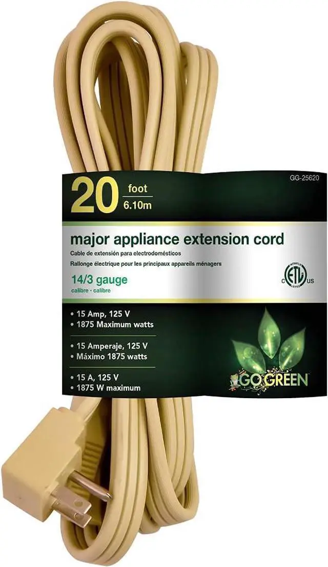 Appliance Cord: The GoGreen Power 14/3 20 Appliance cord is the ideal, heavy duty cord for large appliances at home, such as washing machines, refrigerators and dryer machines. This kink-free cord from GoGreen fits the bill perfectly.