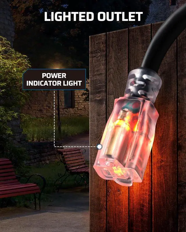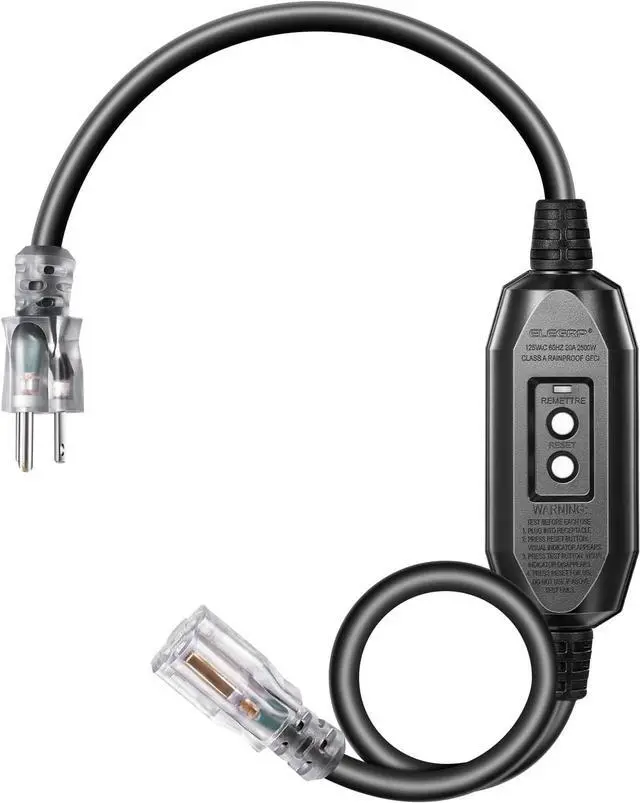 [Easy-To-Use Tail Plug with Indicator] Single socket transparent pigtail with built-in indicator light, when the power cord is energized, the LED indicator will light up, allowing you to know that the GFCI cable is ready for use and easy to find even in the dark