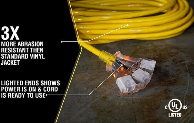 High-Visibility Extension Cord: Yellow Jacket extension cords are bright yellow for easy visibility