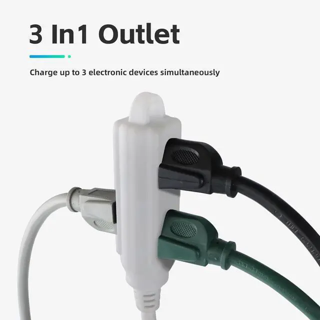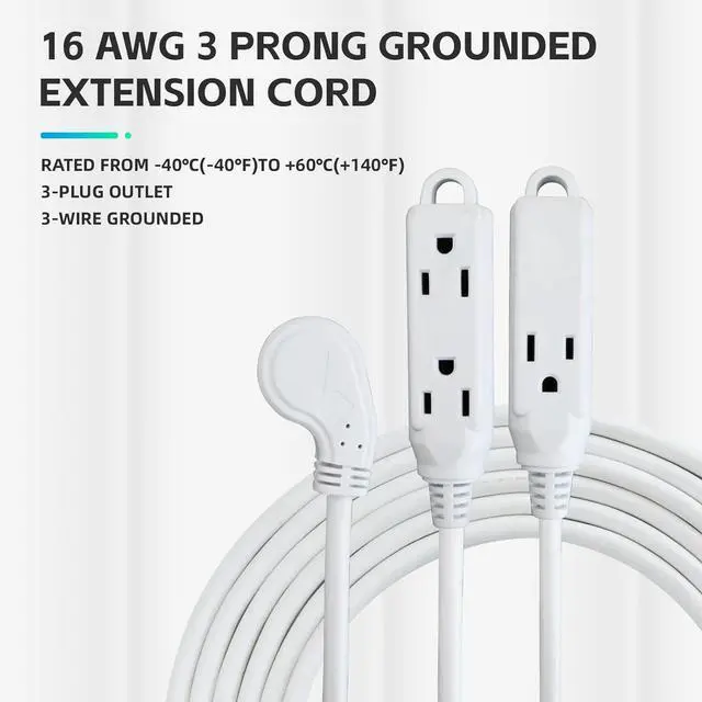 Maximize Efficiency with 3-in-1 Outlets - 16 AWG 3 Prong Grounded Extension Cord with 3 Front and Back Outlets for Multiple Device Connections