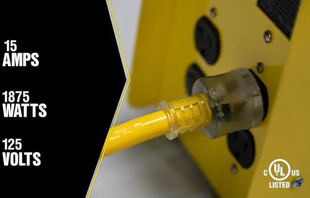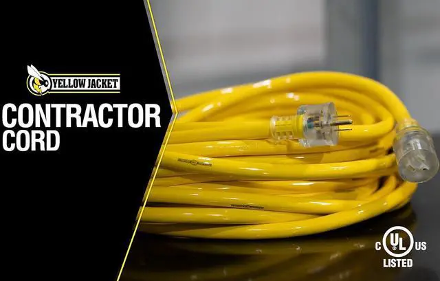 10 GAUGE; 3 prong contractor extension cord provides 15 Amps; 125 Volts and 1625 WattsUL Listed