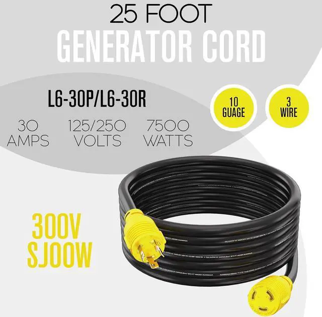 ALL-WEATHER INDOOR/OUTDOOR USE: 25-foot long, 10 gauge/3-conductor all rubber locking 3 prong 30 amp extension cord. Rated for general indoor and outdoor use and is compliant with cradle mounts, portable AC units, air compressors, electric vehicle charges, and emergency electrical needs during power outages and other power connection purposes.