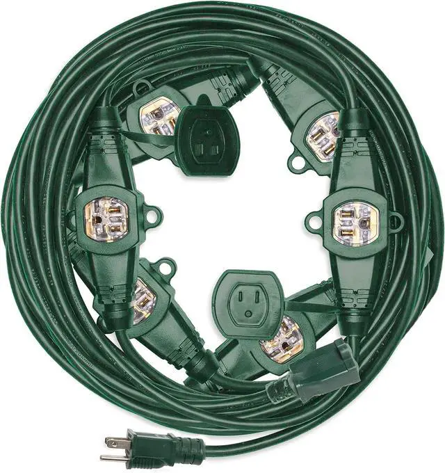 Weatherproof & Heavy Duty: Flexible vinyl covering protects cords against water, snow, abrasion and sunlight. Great for gardening, landscaping, or powering outdoor lights. This 14 AWG heavy duty extension cord with multiple evenly spaced outlets is great for gardening, landscaping, powering household major appliances, leaf blower, and any uses.