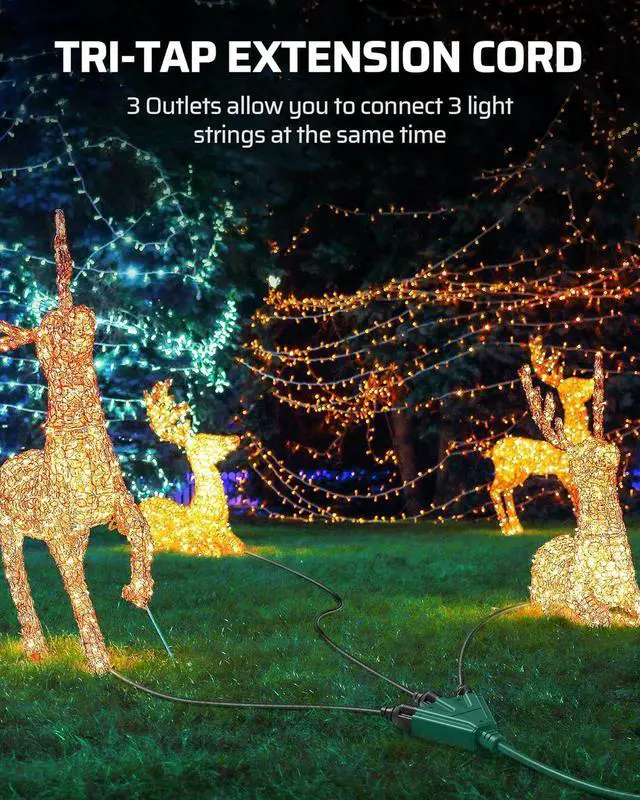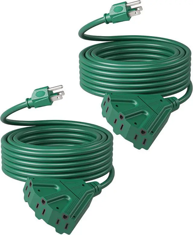 [For Indoor & Outdoor] The Tri-Tap extension cord splitter passed thousands of times bending and plugging tests without fear of heat and cold, perfect for outdoor lighting, Christmas decor, lawnmowers, snow removal tools, heaters, and household appliances; its green double jacket looks invisible under your Christmas tree