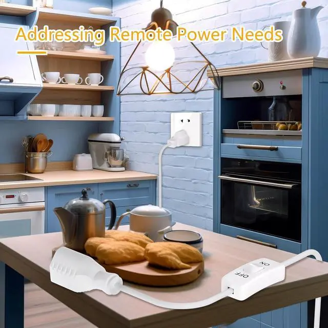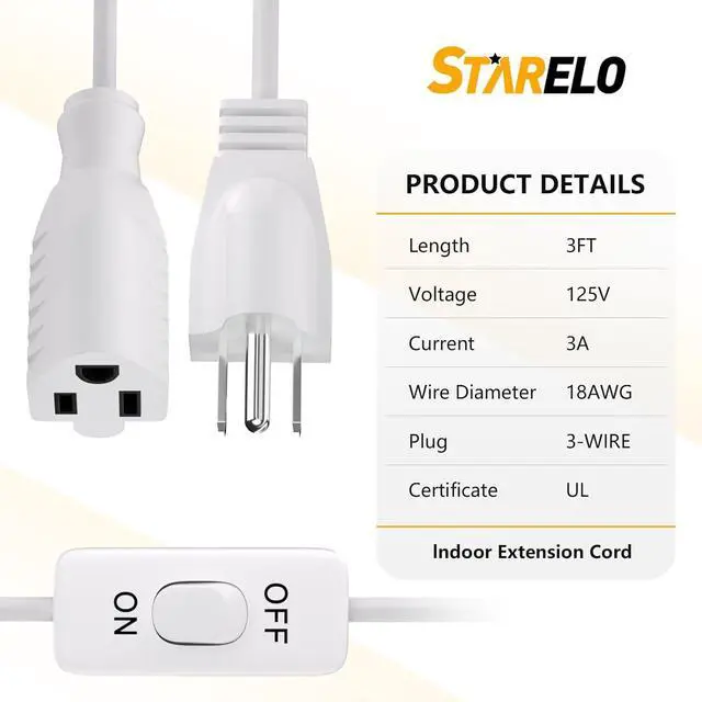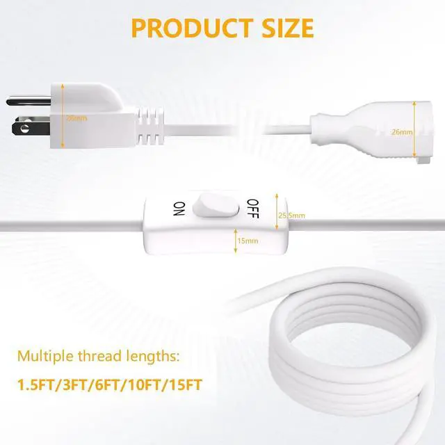 WIDE USE: 3FT extension cord with control switch can solve the problem of distance between power supply and electrical appliances, suitable for holiday lights, garden lights, and all kinds of office electrical equipments and kitchen appliances in the office and other places that need one-touch control switch.