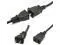 The female connector plugs directly into the device power cable while the male connector plugs into a standard outlet.