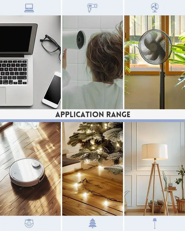 Multipurpose Perfect for home and office use. Easy to power your table lamps, small appliances and holiday lights. These flat extension cords fit behind the furniture and you can place them in a narrow place that is hard to reach.