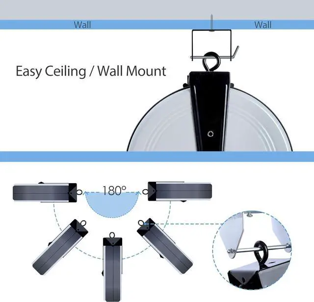Ceiling & Wall Mount with 180 Degree Swivel The extension cord reel with outlets can be easily mounted on the ceiling or the wall, bracket and screws are included in the package. Also, the reel can be swivelled 180 degree according to your demand. It is ideal for garage or outdoor use.