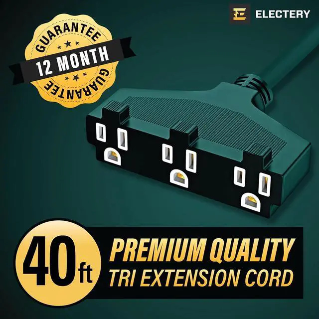 UNIQUE SIZE AND COLOR DESIGN - This Green Tri-plug extension cord comes in multiple lengths 20 ft. 40 ft. Special customized design with white inserts in the plug, to give a nice look even! Dark black PVC jacket blends into any outdoor environment or indoor space; like any office workspace; for your computers, scanners, lighting, decorations, and appliances. A 3-prong outlet extension cord is compatible with any plug that requires a 3-pin male-to-female power connector.