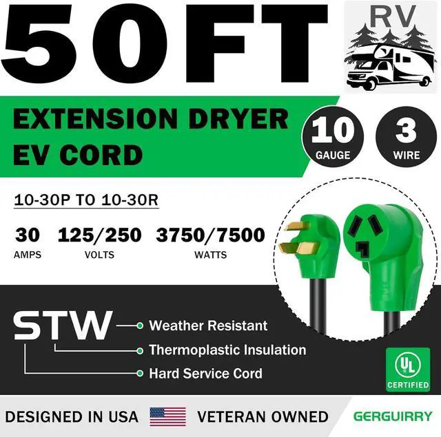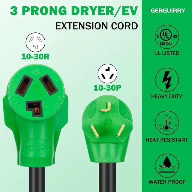 SAFETY DESIGN: Gerguirry dryer power cord 3 prong has molded plugs at both ends and is designed with extra space to plug and unplug. All our 30 amp dryer extension cord has been tested multiple times before shipping. Safe to use