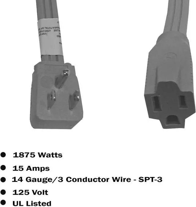 1875 Watts -15 Amps/14 Gauge/3 Conductor wire - SPT-3/125 Volt. UL Listed
