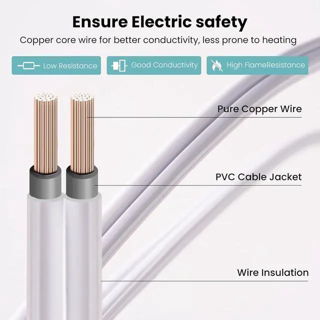 EXCELLENT PRODUCT PERFORMANCE: Made of copper and thick vinyl sheath that meets international standards, it has low resistance, low power transmission loss, moisture resistance, wear resistance, flame retardancy, and slip resistance. Safe and durable, and has good flexibility for easy storage.