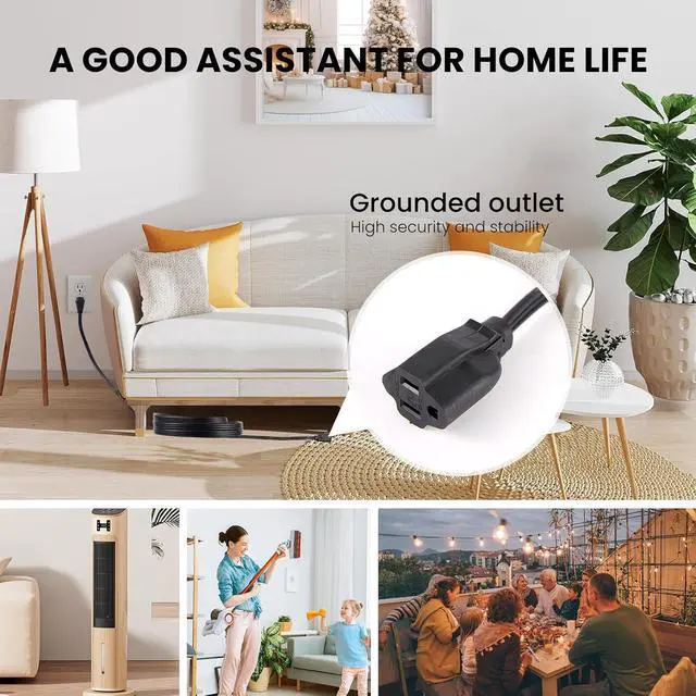Indoor Use: The SPT-3 flat plug extension cord is designed for indoor use, certified by UL, It caters to various household electrical needs, accommodating appliances like microwave ovens, electric heaters, computers, and Christmas lights. It' s flat plug design allows for efficient space-saving, enabling you to place furniture closer to the wall without obstruction.