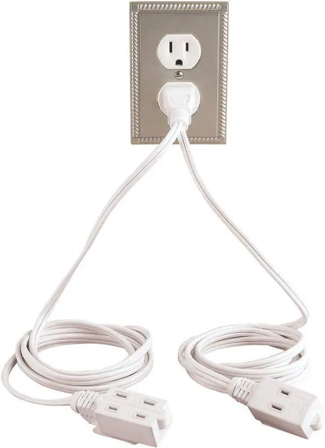Double ended extension cord with 3 outlets per arm Lets you plug in up to 6 items into one outlet Lets you plug in up to 6 items into one outlet For indoor use only