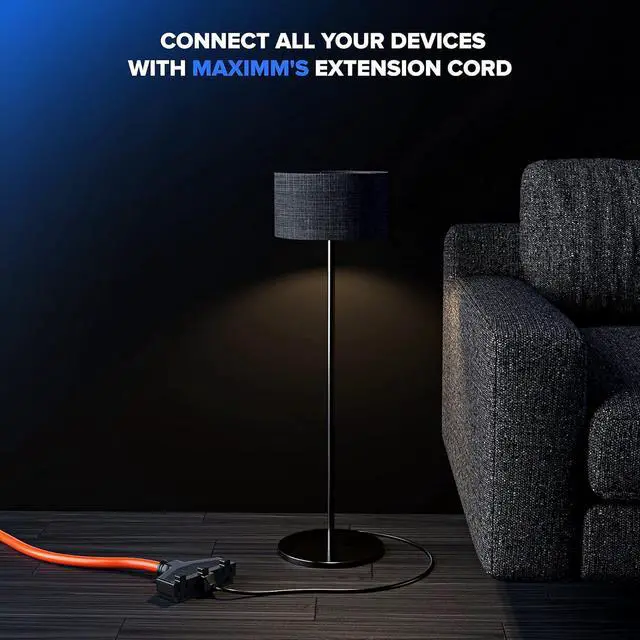 Multiple Outlet Indoor Extension Cord: Extend the reach of your power source with Maximm' s 3-prong extension cord, designed for indoor use. This cord connects to existing cables, power strips, or standard 3-prong 120V AC outlets, providing reliable power extension when needed.