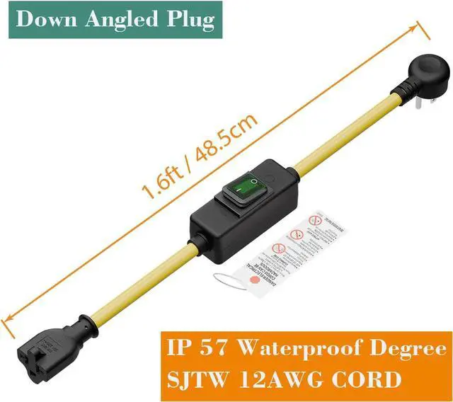 [IP57 Waterproof Outdoor use] On/Off Double Cut switch extension cord, rated Max.: @ [23Amp 125Volt and 16Amp 250V], 3 -Prong USA Canada extension power cord with 23-Amp/125Volt Waterproof on off switch for your household 3-Prong power devices.