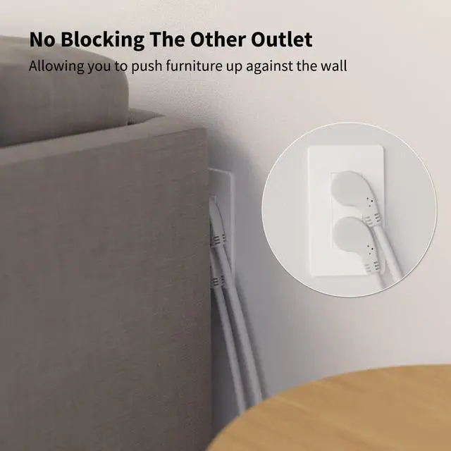 SPACE EFFICIENT: Convert your standard AC power cord to a slim flat plug, providing angular flexibility. Plug into the top outlet and still have usage of the bottom outlet with this flat plug cord