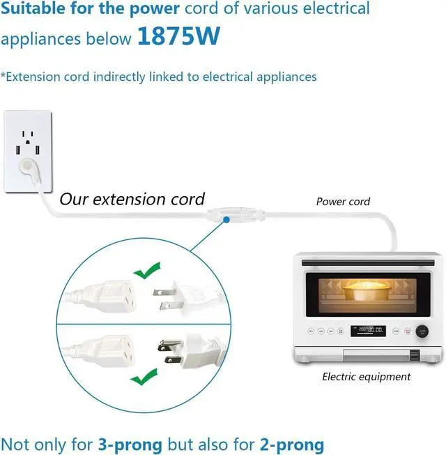 HEAVY DUTY: Thicker wire diameters (14 AWG) allow for handling more amperage and wattage, making it safer and more reliable compared to thinner cords