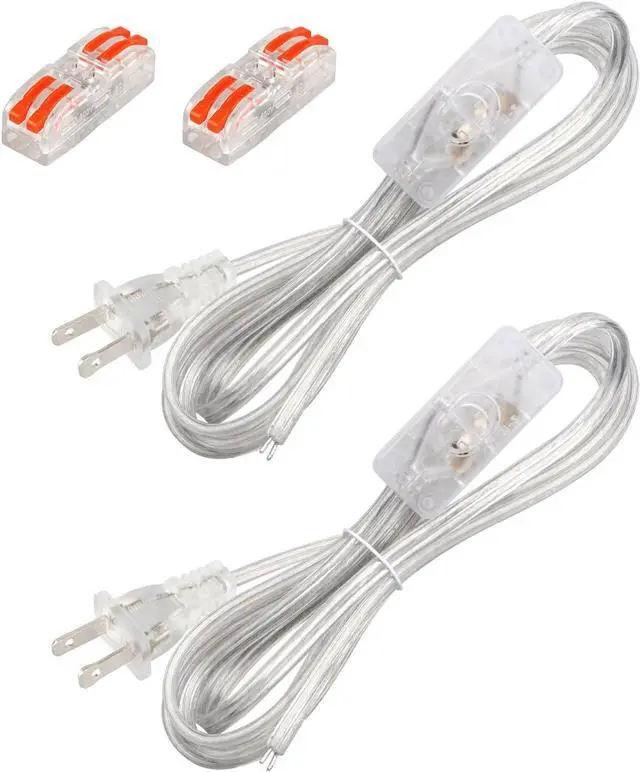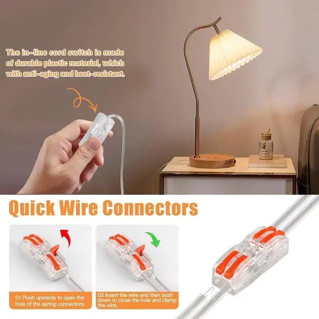Complete Replacement Kit: 2 clear lamp cord switch set + 2 wire connectors, everything you need in one package!