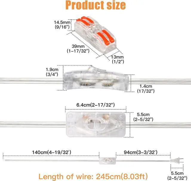 Safety & Installation: Asjeumt lamp cords, switches and plugs all comply with North American electrical safety standards and certifications. Pre-stripped wire ends ( 0.25 inches/6mm) and clear neutral/live wire labels make setup a breeze. Included spring quick wire connectors eliminate the need for soldering perfect for DIY beginners and pros alike.
