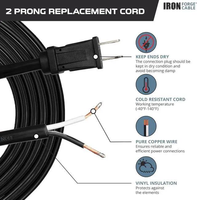 Open-Ended for Custom Installations: The power cable 2 prong features an open end with bare wire, allowing for easy customization and installation in various applications.