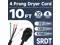 Heavy Duty - 10 gauge, 10 foot, 30 amp, 125/250 volt, 3750 watt, NEMA 14-30 wire plug, SRDT.